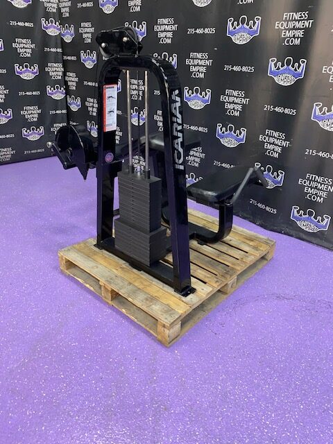 BRAND NEW Empire 8-stack jungle gym/cable crossover with 320 lb. weight stacks! 2.5” x 4.5” rugged, 11-gauge steel and oval tubing for that extra beefy appearance. Unit has high tension cables; multi chin grips that are fabricated with smooth rubber and finished with high-tech aluminum ends and collars. Stations interchange around the central hub for a possible 12-stack, L-shaped jungle gym. Options allow the substitution of 2 hi/low adjustable pulley columns replacing the tricep press down stations found on the Deluxe 8-stack version B (MDM-8SB).