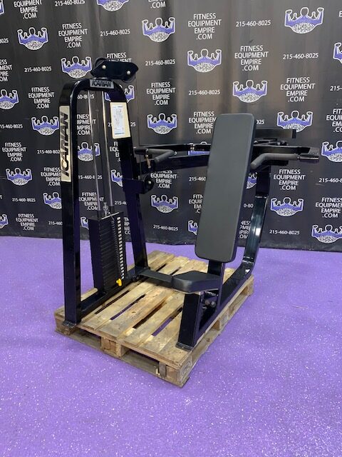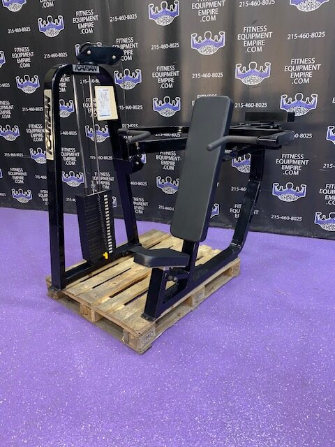 BRAND NEW Empire 8-stack jungle gym/cable crossover with 320 lb. weight stacks! 2.5” x 4.5” rugged, 11-gauge steel and oval tubing for that extra beefy appearance. Unit has high tension cables; multi chin grips that are fabricated with smooth rubber and finished with high-tech aluminum ends and collars. Stations interchange around the central hub for a possible 12-stack, L-shaped jungle gym. Options allow the substitution of 2 hi/low adjustable pulley columns replacing the tricep press down stations found on the Deluxe 8-stack version B (MDM-8SB).