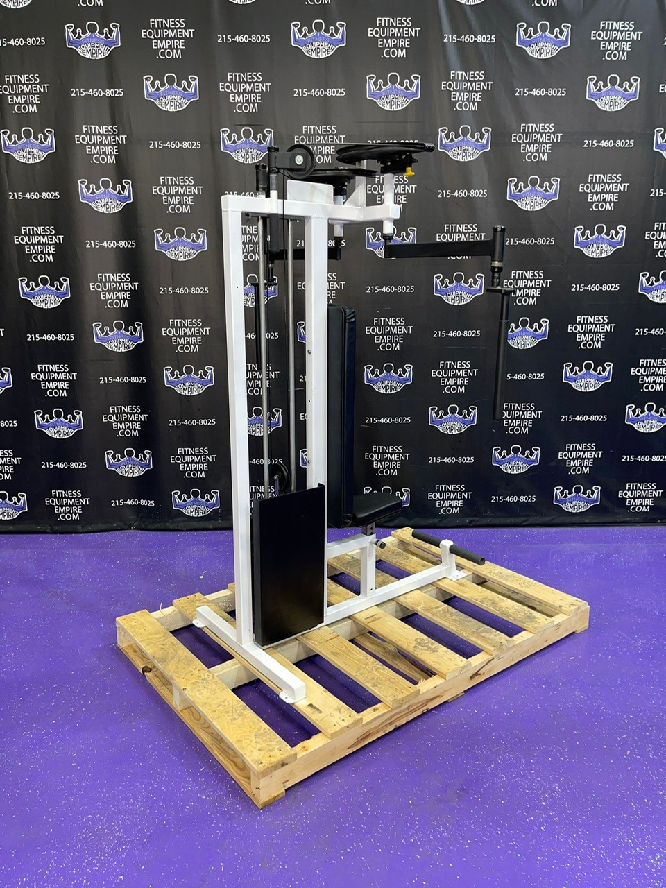 This is an excellent machine for the delts, the middle delts specifically. Machine can be used to warm up, as a staple movement or as a finisher to really burn out the shoulders. This is the exercise that gives the delts the nice, round, cannon ball look. It’s also very hard to cheat the exercise while using this machine.