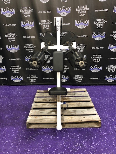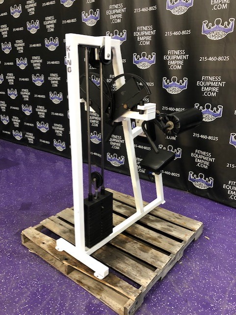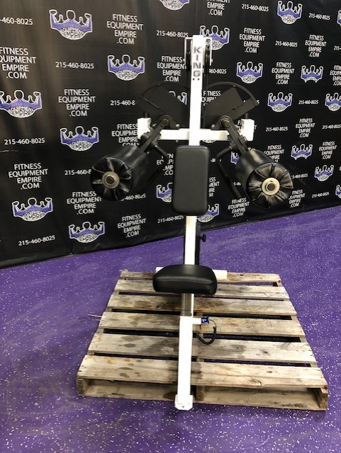 The King seated lateral raise is an excellent machine for the delts; the middle delts specifically. Machine can be used to warm up, as a staple movement or as a finisher, to really burn out the shoulders. This is the exercise that gives the delts the nice, round cannon ball look. It’s also very hard to cheat the exercise while using this machine. This machine is in stellar condition. The unit has been cleaned, serviced and is ready to go! This machine also has a very small footprint.