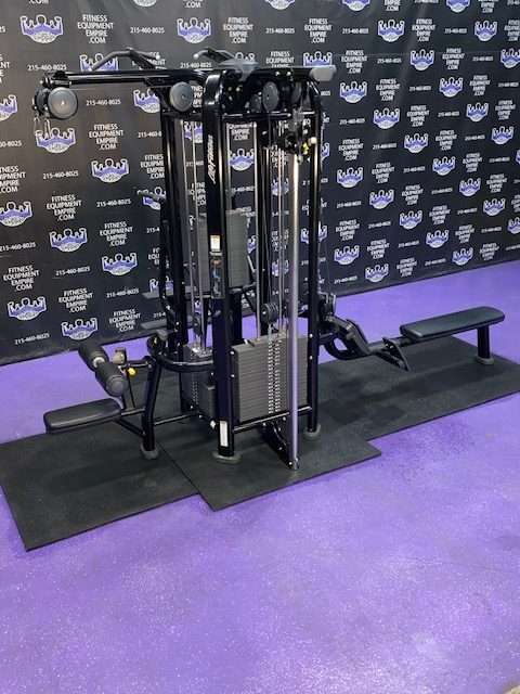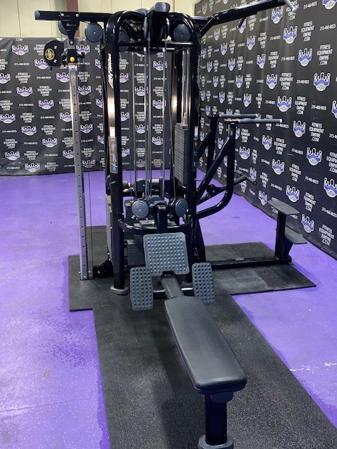 Life Fitness Signature Series Dual Pulley Platinum MJ4 multi station. This unit is simply beautiful, extremely functional and effective. This is the current and latest model and has a retail price of more than $12,000. It sells elsewhere preowned for $8,000. This machine is capable of training the entire body in many, many ways. 4 people can use this machine at once. This would be a beautiful centerpiece in any gym, home or studio. Unit is preowned and may show some normal wear. Unit is in excellent condition and is in perfect working order.