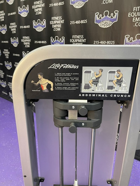 Life Fitness Pro 2 platinum abdominal crunch. This unit will train your entire core, abdominals and obliques. The ab crunch will also help you build a great set of abs. The back extension is a safe alternative to a deadlift, and with the 305 lb. stack, it’s plenty heavy. Resistance is a must to build and strengthen the abdominals. This machine is in excellent condition and perfect working order. This unit has a retail price of more than $4,000. Save BIG with us!