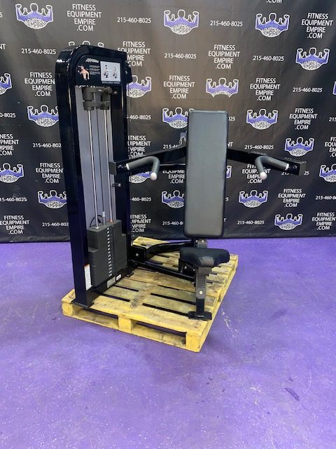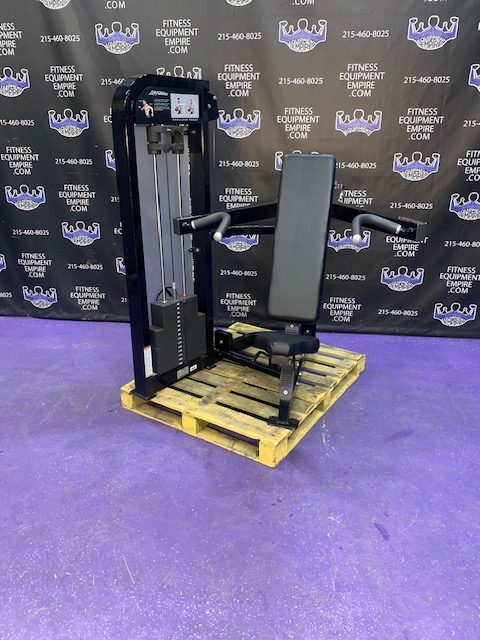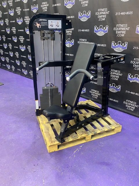 Life Fitness Pro 2 shoulder press in excellent condition. This is a late model unit by Life Fitness. Pro 2 is the heaviest duty and most beefy line of Life Fitness. It also has the best feel and the heaviest weight stacks. This unit is in stellar, super clean condition.