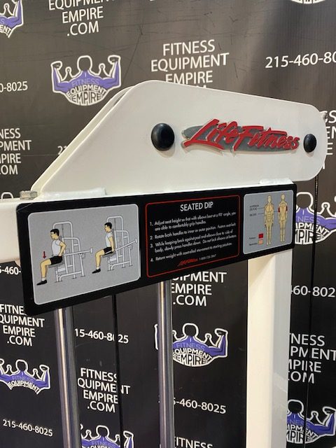 This is a beautiful and extremely functional machine. The handles adjust wide and close, making it a comfortable fit for everyone. Unit will blast the triceps and also the pecs. Simply lean forward and you can really engage your lower pecs. This unit has a super heavy, 255 lb. weight stack. This machine is hard to come by , is in excellent condition, and feels amazing.