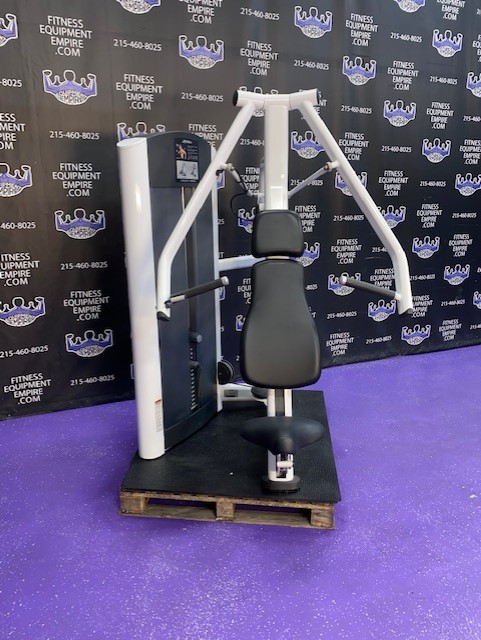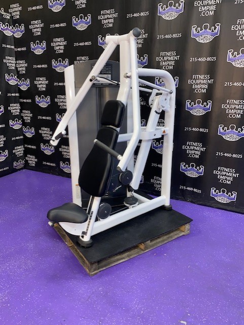 The Life Fitness Signature Series chest press is the ideal machine to help users develop their upper body strength. Its design provides a stable arc of motion, which allows for optimal form and results. This chest press machine is one of a series of great Life Fitness signature selectorized units. Life Fitness Signature Strength, designed to be the smoothest system to use in your fitness facility. Superb quality and craftmanship, non-intimidating to use. Chest press allows the user to focus on the chest muscles to train efficiently, with the best biomechanical movement available.