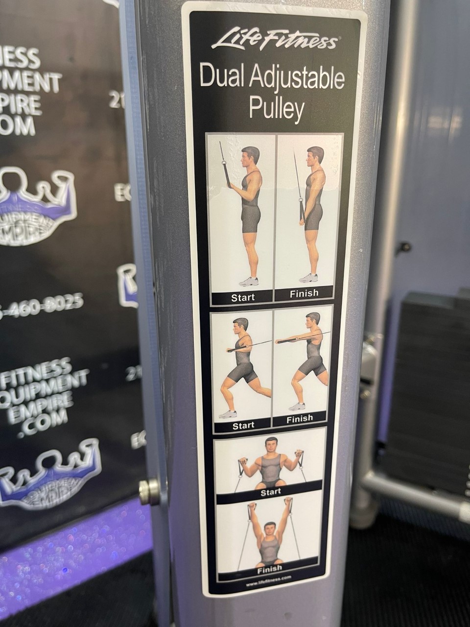 Life Fitness CMDAP dual adjustable pulley functional trainer. This is the functional trainer to have and the holy grail of functional trainers. These are what everyone and every gym wants. They are built like tanks, very good looking, have heavy weight stacks, multi grip pullup bars and obviously, are very functional and allow you to do a multitude of exercises. This unit is in excellent, beautiful condition. This machine is in perfect working order and perfect working condition. Stacks, cables, bushings, pulleys etc. are all perfect. This unit will come with an attachment bar that allows you to connect the pulleys, giving you the ability to bench press, squat, shoulder press and more; just a few of the hundreds of exercises that can be performed on this machine. This unit has a retail price of $8,000+. These are hard to find preowned and at this price, always sell fast. If you’re in the market for one, this is your chance.