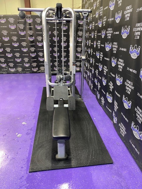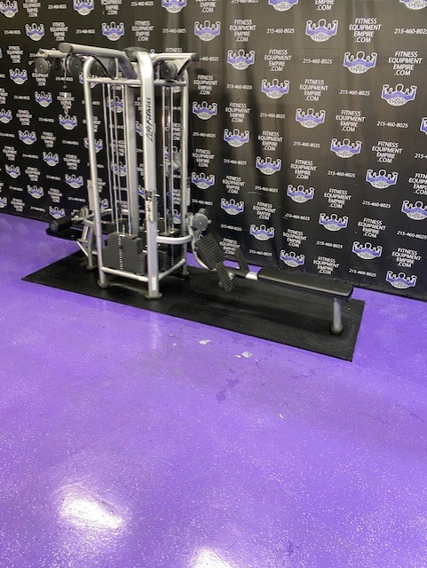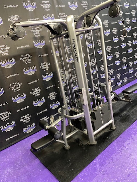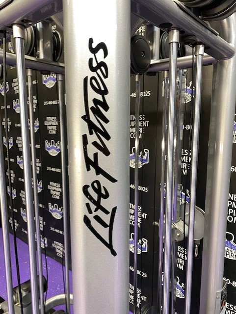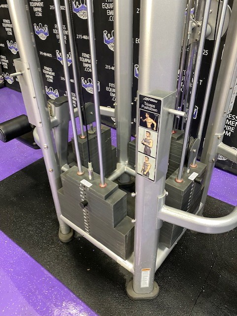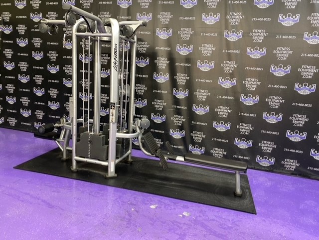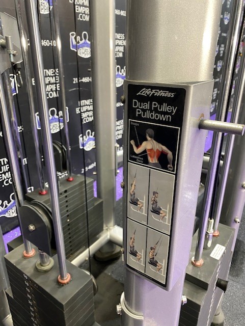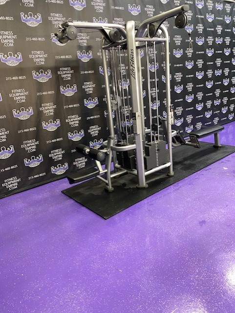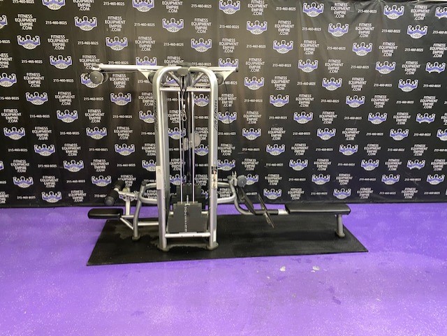Life Fitness Signature Series Dual Pulley Platinum MJ4 multi station. This unit is simply beautiful, extremely functional and effective. This is the current and latest model and has a retail price of more than $12,000. It sells elsewhere preowned for $8,000. This unit has lat pulldown, low row, adjustable pulley and tricep pushdown, making this machine capable of training the entire body in many, many ways. 4 people can use this machine at once. This would be a beautiful centerpiece in any gym, home or studio. Unit is preowned and may show some cosmetic wear. Unit is in BEAUTIFUL condition and is in perfect working order.