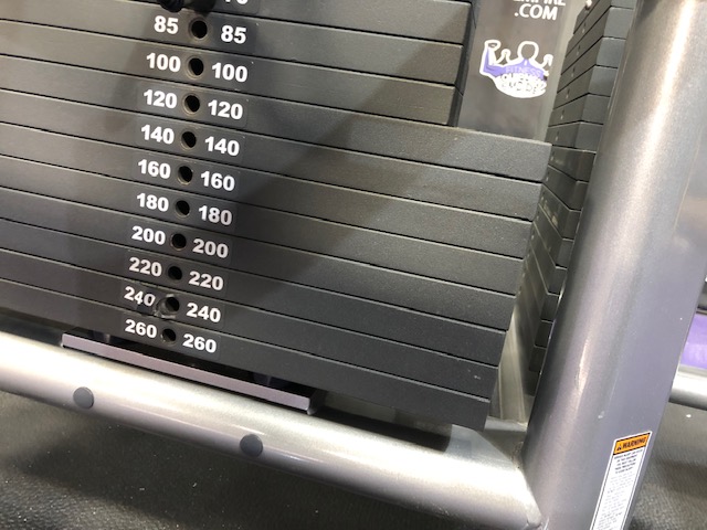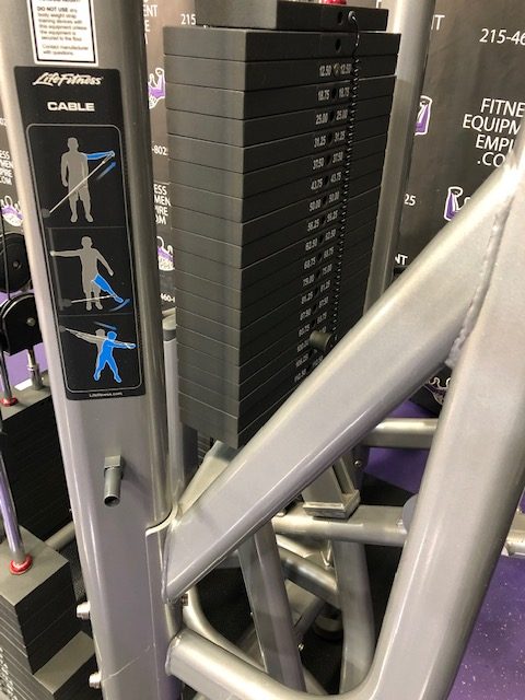 Weight Plates: 1” solid steel weight plates, rear weight stack shrouds, pulley covers, low friction, self lubricating, weight plate bushings to minimize noise and friction. Magnetic weight pin for easy, secure adjustments. Incremental add on weight system is stored on the frame of each machine. Dual Adjustable Pulley and Single Station machines have dual weight stacks for ISO-lateral movements.