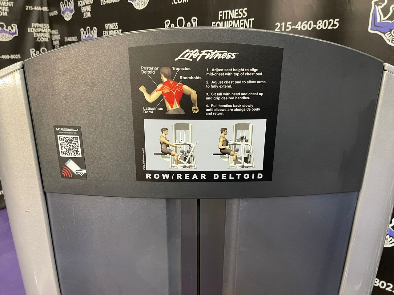 Life Fitness Signature Series row and rear delt combo w/300 lb. stack. This is a beautiful late and current model unit in excellent condition. This row is very popular and highly sought after. The angled multi grip handles offer just about every hand position (pronated, supinated, neutral). Not only is the seat adjustable, but so too is the angle of the machine. The underhand grip feels amazing and greatly mimics the bent over row. This machine sells elsewhere preowned for $3,000 and retails new for $5,800.