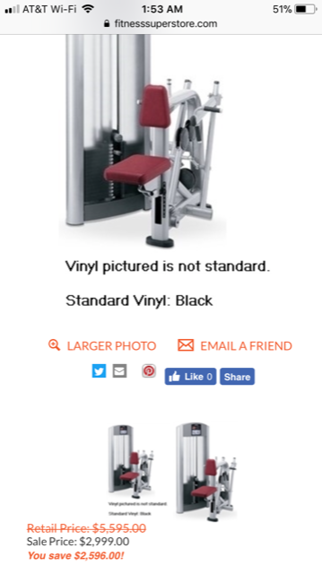 Nautilus Star Trac Inspiration and Impact 12 Unit Total Body Strength Circuit & Gym Package – Silver frames with black upholstery. These are BEAUTIFUL machines and are the latest and current models available by Nautilus. There is a machine for each and every muscle group. These machines were purchased new by a small personal training center and have had little use. All units have the latest Lock & Load weight stack Technology. This circuit is priced incredibly well, far below retail, and is a phenomenal buy for any home, studio or commercial facility.