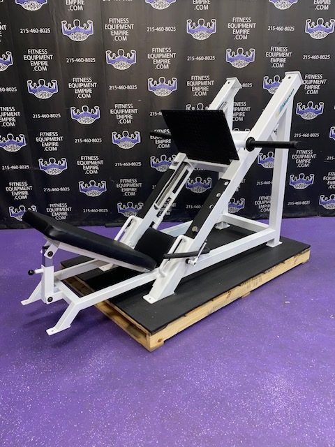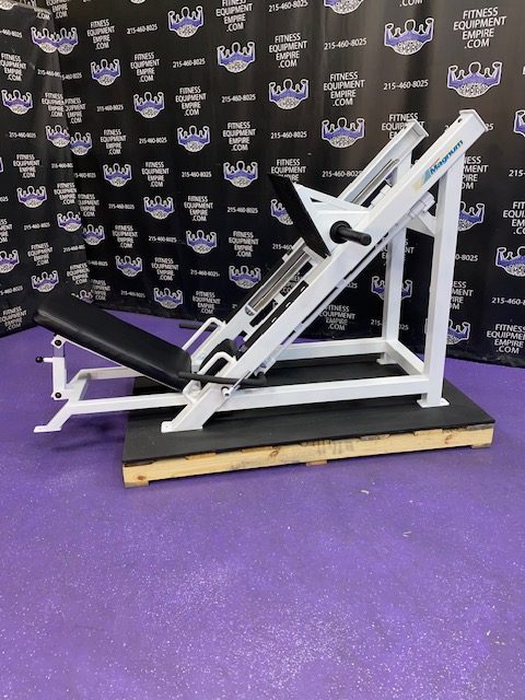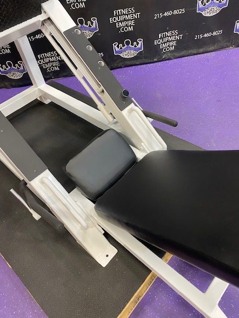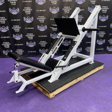 Hammer Strength plate loaded ISO lateral jammer press. This is essentially a standing chest press, (you can also add an adjustable bench and perform seated presses). These are often used by athletes, football players, etc. It’s a very powerful movement that will greatly increase your upper body strength, chest and shoulder development. These units are very common in NFL and NCAA training facilities. Unit is priced to sell.