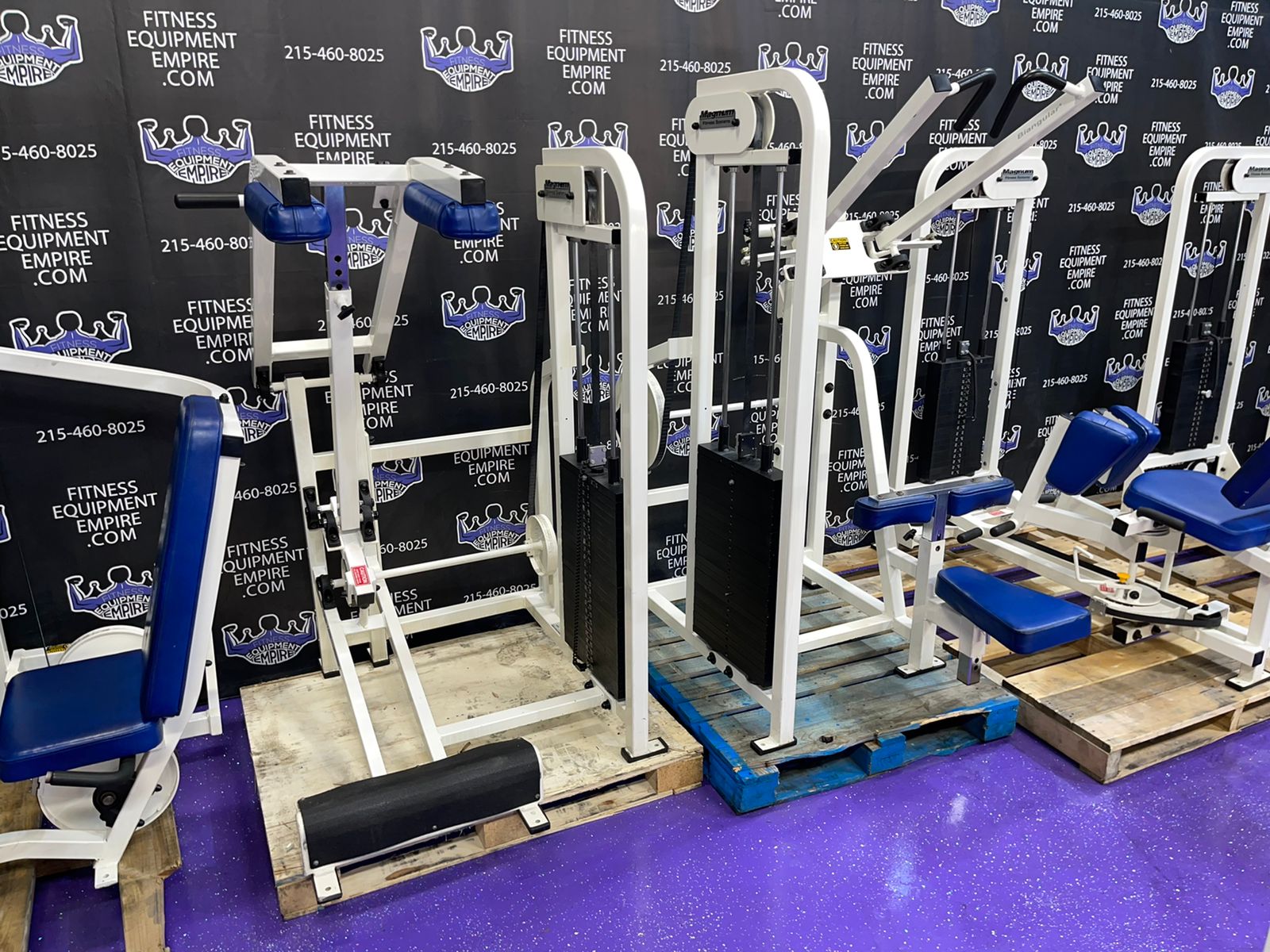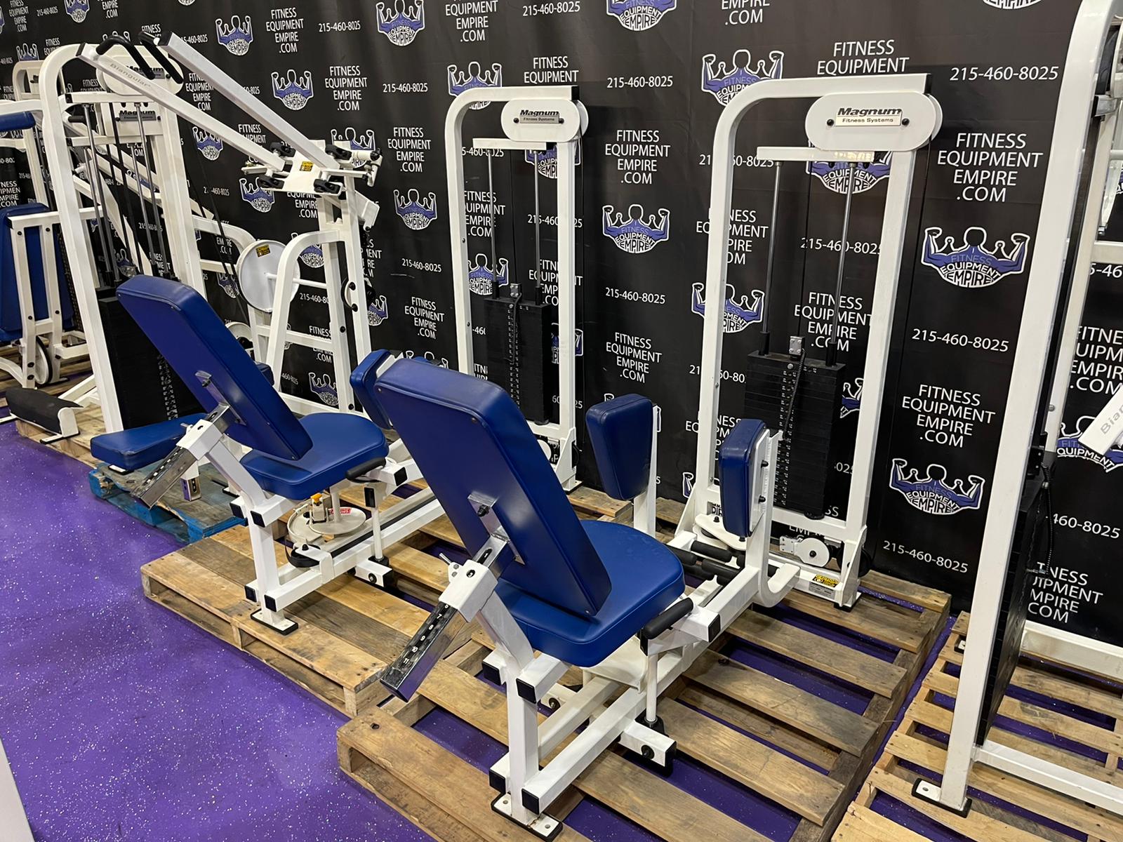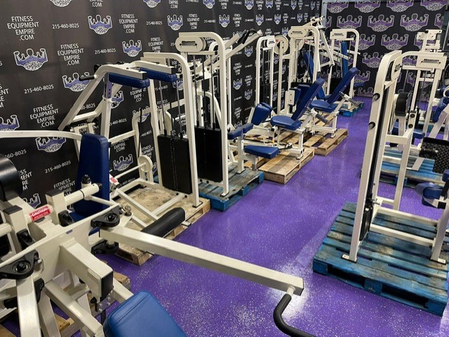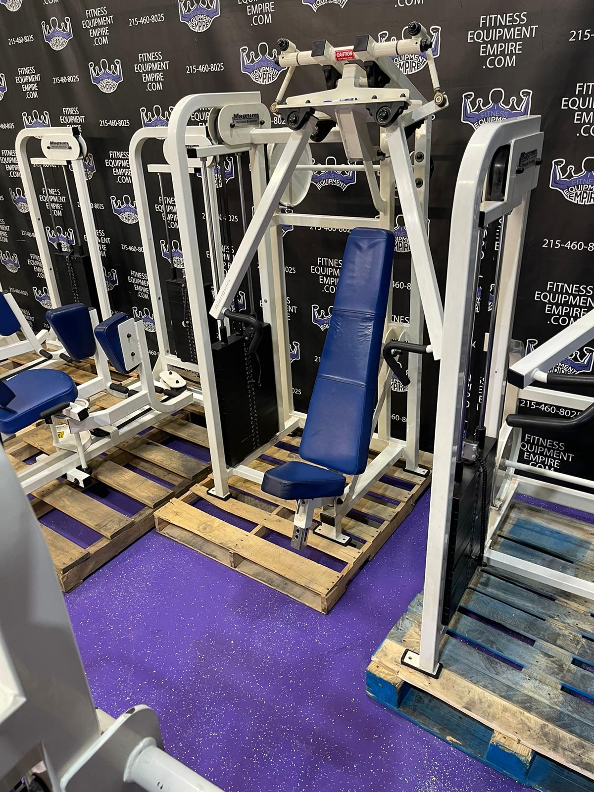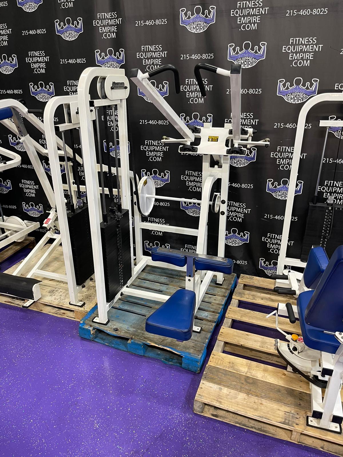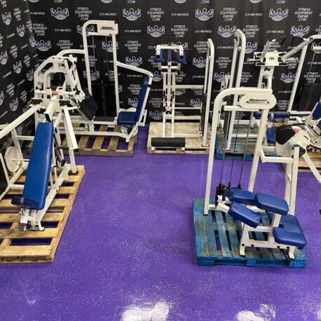 Hammer Strength plate loaded ISO lateral jammer press. This is essentially a standing chest press, (you can also add an adjustable bench and perform seated presses). These are often used by athletes, football players, etc. It’s a very powerful movement that will greatly increase your upper body strength, chest and shoulder development. These units are very common in NFL and NCAA training facilities. Unit is priced to sell.