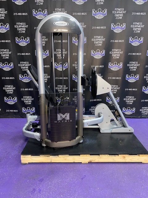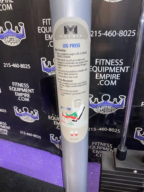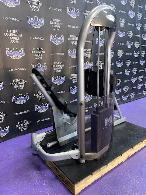 Matrix Seated Leg Press. This is a very smooth and natural feeling machine. This unit will target your quads, hamstrings , glutes and calves. This unit also has a considerably smaller footprint than comparable leg presses.