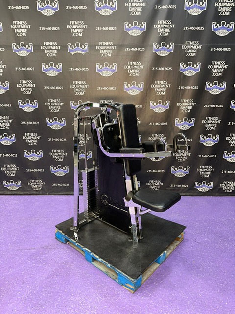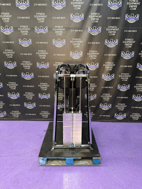 BRAND NEW Empire 8-stack jungle gym/cable crossover with 320 lb. weight stacks! 2.5” x 4.5” rugged, 11-gauge steel and oval tubing for that extra beefy appearance. Unit has high tension cables; multi chin grips that are fabricated with smooth rubber and finished with high-tech aluminum ends and collars. Stations interchange around the central hub for a possible 12-stack, L-shaped jungle gym. Options allow the substitution of 2 hi/low adjustable pulley columns replacing the tricep press down stations found on the Deluxe 8-stack version B (MDM-8SB).