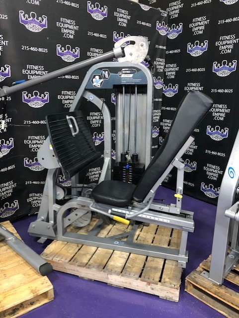 Star Trac Inspiration seated leg press with lock and load technology in super clean condition. This unit has a 400 lb. stack, is fully adjustable and extremely smooth. The large footplate allows various foot placements, allowing you to train all muscles of the legs such as quads, hamstrings, glutes and calves. The Lock N Load® pin less weight selection system affords users the most streamlined and efficient workout possible, while reducing common maintenance hassles associated with traditional weight stacks and pins. This unit has a retail price of $5,400.