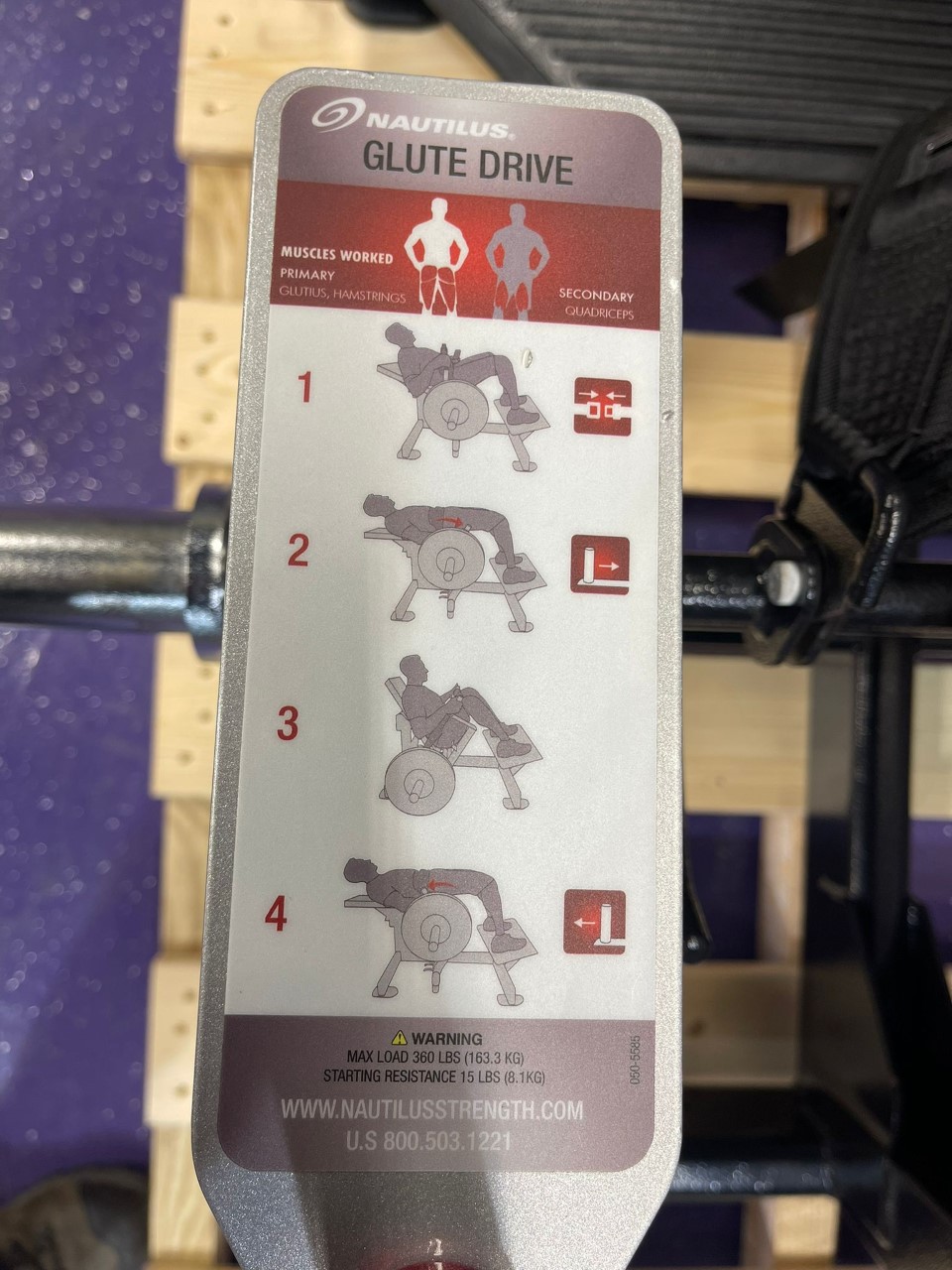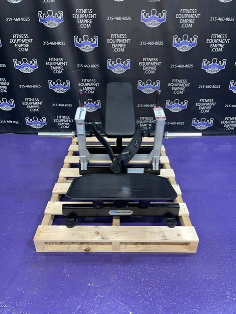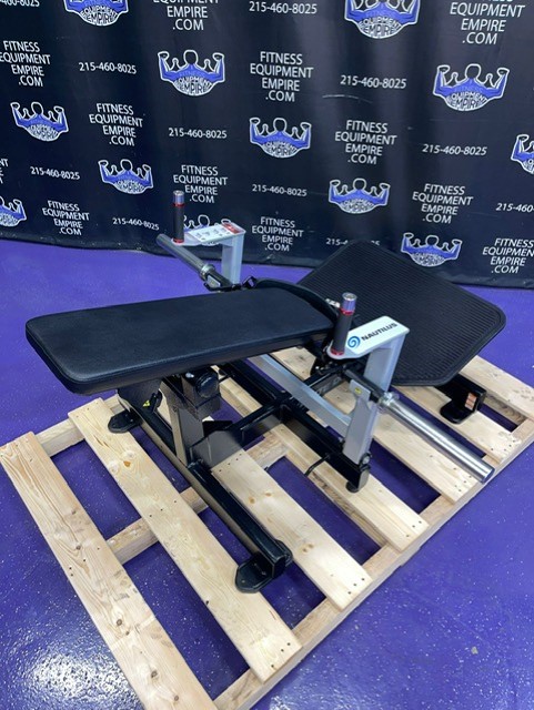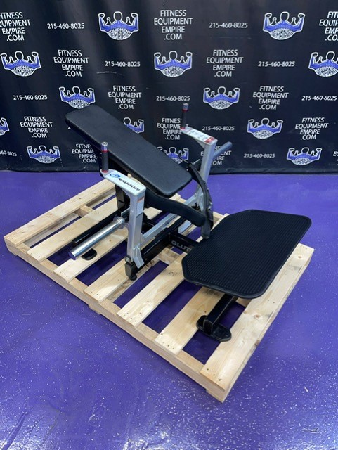 Inspired by the increasing trend of glute exercises seen in various and dangerous executions in the gyms today, the Nautilus Glute Drive piece safely and smartly isolates your glutes, building power through a strong hip bridge motion, creating sexy glutes, improved hip and core stability. These benefits are universally desirable, important for a wide variety of sports and exercises, and are arguably the most important muscles for total athleticism. The Glute Drive gives you the full benefits of the hip thrust exercise, simply, safely, and with good form. The machine is designed to promote good biomechanics and balanced weight curve. A comfortable padded belt secures the user to the back pad which supports the full length of the spine for added safety. Users can load up to four plates on each side, which gives the machine a max weight load of 360 lbs.
