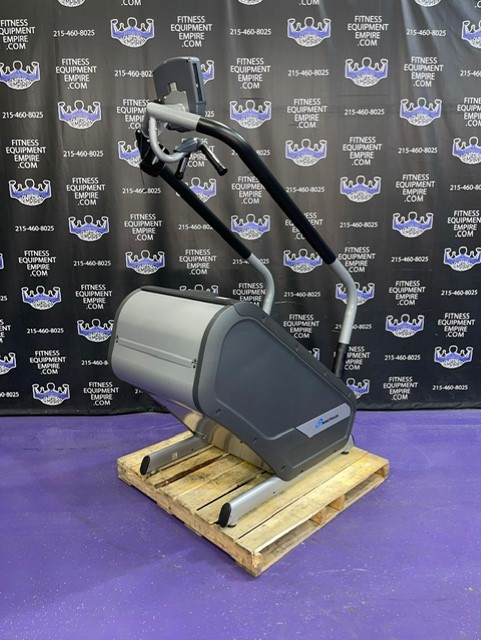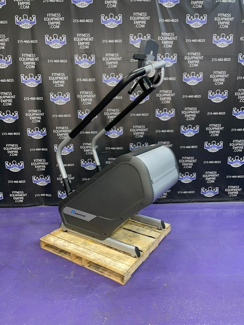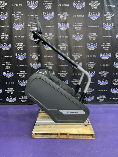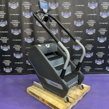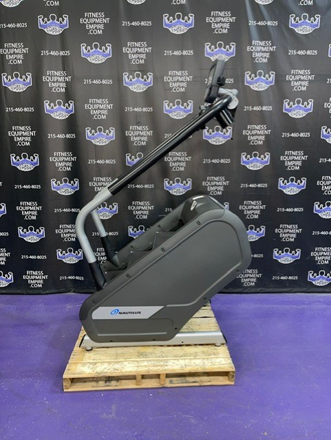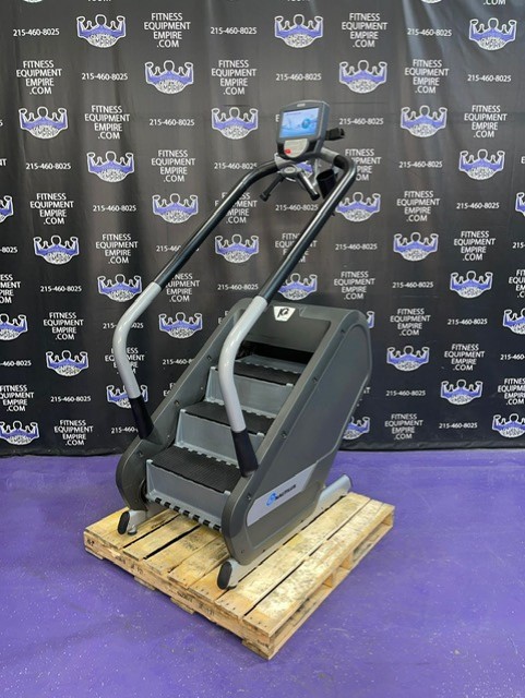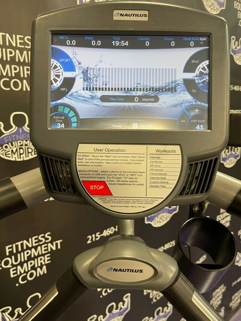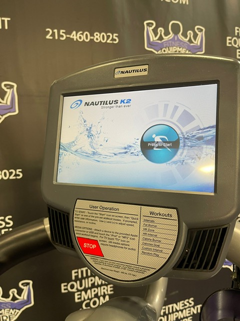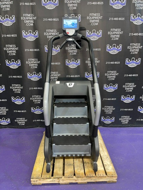 The Nautilus K2 Stepmill has 20 different resistance levels ranging from 20 steps per minute up to 165 steps per minute, and 12 different workout programs to choose from. There is a built-in cooling fan that operates on high, low and auto speeds. The auto speed adjusts as a function of exercise effort. It is equipped with heart rate monitoring and Ipod capabilities. The steps have a non-slip surface, and the surface of the machine is treated with mPale; an antimicrobial, to prevent bacteria, mold and algae. The step height is 7.4″ and the step depth is 9.5″. This unit is in excellent condition, has been cleaned, serviced and is in perfect working order.