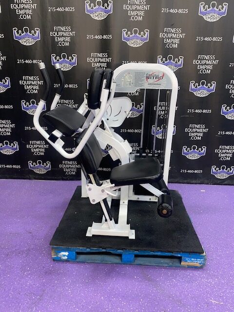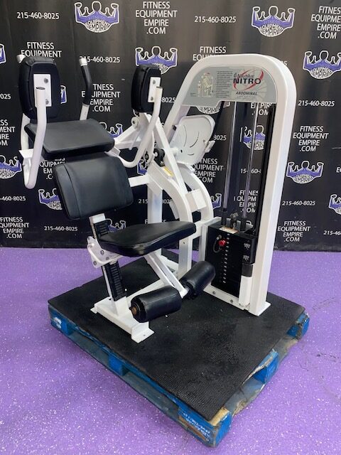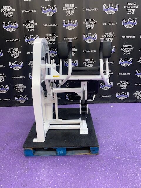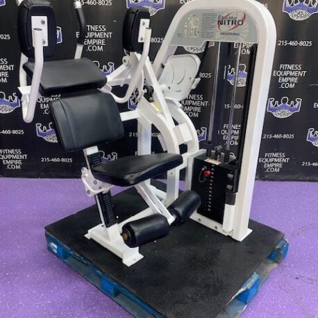 BRAND NEW Empire 8-stack jungle gym/cable crossover with 320 lb. weight stacks! 2.5” x 4.5” rugged, 11-gauge steel and oval tubing for that extra beefy appearance. Unit has high tension cables; multi chin grips that are fabricated with smooth rubber and finished with high-tech aluminum ends and collars. Stations interchange around the central hub for a possible 12-stack, L-shaped jungle gym. Options allow the substitution of 2 hi/low adjustable pulley columns replacing the tricep press down stations found on the Deluxe 8-stack version B (MDM-8SB).