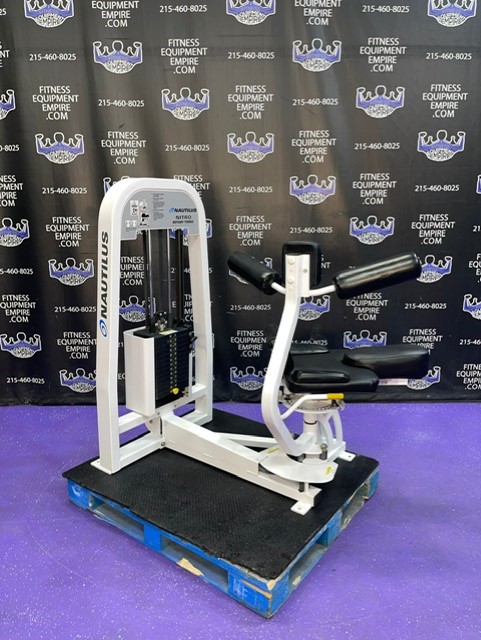 This is a late model, belt driven and extremely smooth Nautilus Nitro Plus rotary torso in beautiful condition. This unit came from a private women’s gym and has had very litte use. This unit is fully adjustable, allowing you to begin at any starting point. Unit is designed to strengthen the entire core, abdominals, obliques, serratus and lower back.