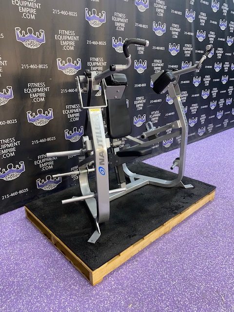 Nautilus Power Plus Chain Driven Plate Loaded Pullover – EXTREMELY RARE. This unit comes with w/Optional Olympic Horn Extensions.