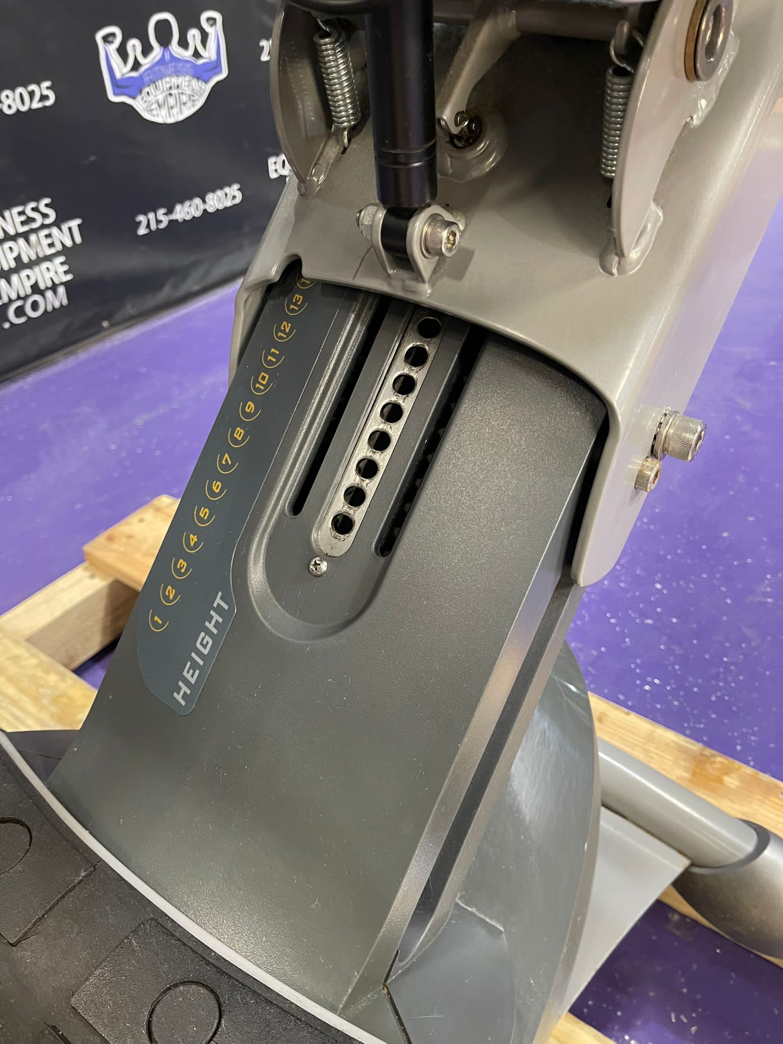 This is a super clean, current model of Cybex 750A Arc Trainer. The Cybex 750A Arc Trainer utilizes reverse arc motion technology, that engages the largest muscles groups in the legs and trunk to effectively burn the most calories, in the least amount of time. It provides a smooth, patented arc pattern that places the user’s toe behind the knee while pedaling, thus reducing stress on the joints allowing for a more comfortable workout experience. This unit has been cleaned, serviced, is in excellent condition and perfect working order. This unit sells elsewhere preowned for as much as $4,600.