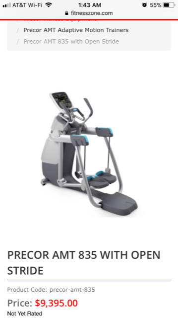 The Precor AMT 835 with Open Stride is the 3rd generation of Adaptive Motion Trainers from Precor and is the exact same unit as the commercial machines you’ll find in fitness clubs worldwide.