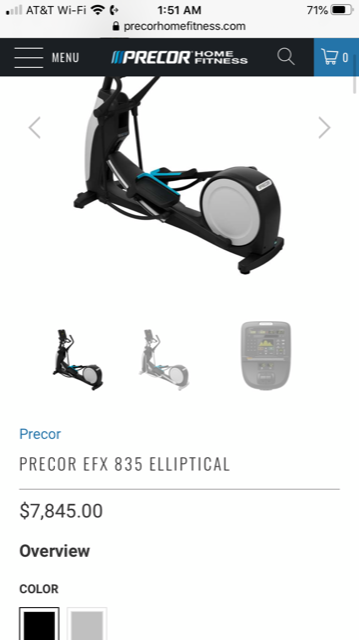 The Precor EFX® 835 with Converging CrossRamp® combines reliability with a natural converging stride path to give you the perfect elliptical for your facility. Carrying on in the tradition of Precor reliability and service, the EFX is easy to clean and maintain with a covered ramp and rear drive housing, and Active Status Light™ – all to improve your ownership experience. For exercisers, the EFX 885 combines the benefits of our patented CrossRamp® technology and fixed handlebars for a total-body workout.