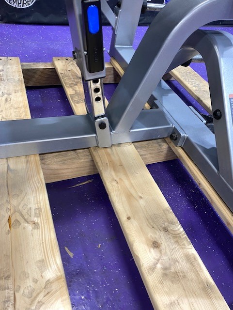 Hammer Strength plate loaded ISO lateral jammer press. This is essentially a standing chest press, (you can also add an adjustable bench and perform seated presses). These are often used by athletes, football players, etc. It’s a very powerful movement that will greatly increase your upper body strength, chest and shoulder development. These units are very common in NFL and NCAA training facilities. Unit is priced to sell.