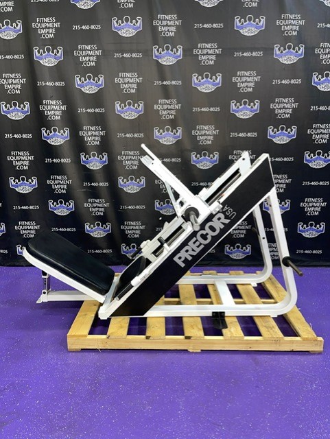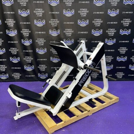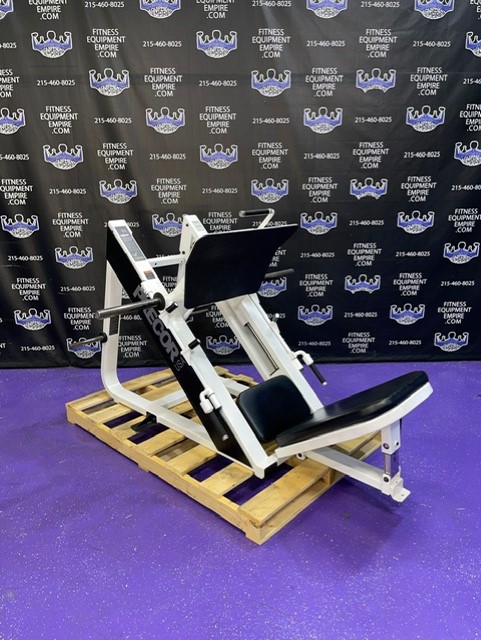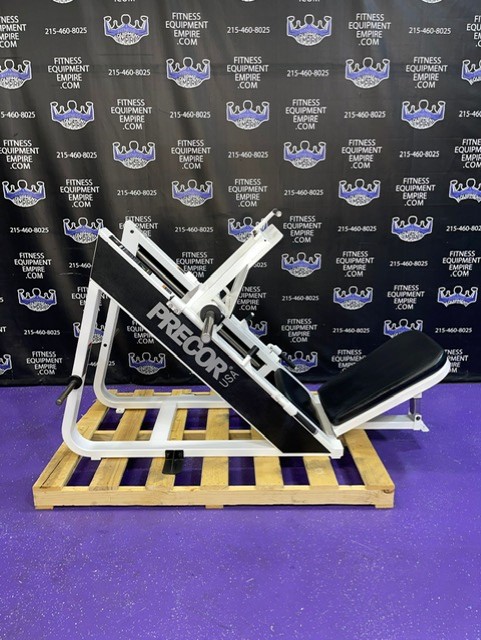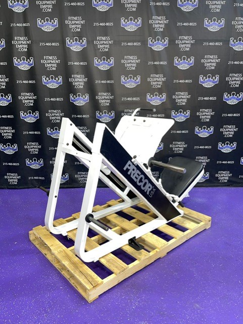 Precor Icarian 601 45 degree plate loaded linear leg press. This is a classic, original, beautiful, highly favored and sought after leg press. Built like a tank, with the perfect angle and silky smooth linear bearings, are a few reasons why this is considered one of the best leg presses of all time. This unit has a large foot plate for various foot positions. This leg press also has a smaller footprint than most. This unit has some minor cosmetic wear, is in excellent condition and perfect working order.