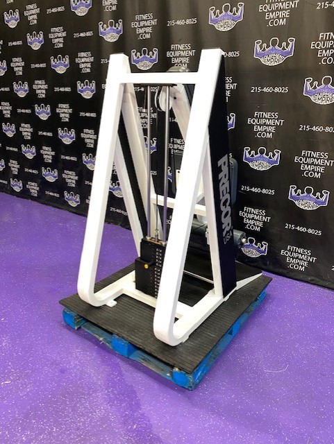 BRAND NEW Empire 8-stack jungle gym/cable crossover with 320 lb. weight stacks! 2.5” x 4.5” rugged, 11-gauge steel and oval tubing for that extra beefy appearance. Unit has high tension cables; multi chin grips that are fabricated with smooth rubber and finished with high-tech aluminum ends and collars. Stations interchange around the central hub for a possible 12-stack, L-shaped jungle gym. Options allow the substitution of 2 hi/low adjustable pulley columns replacing the tricep press down stations found on the Deluxe 8-stack version B (MDM-8SB).