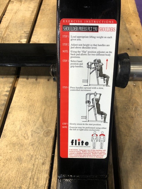 Precor Icarian Flite FLT 550 ISO lateral plate loaded shoulder press. This is a super RARE and extremely well-built line. This machine will destroy your shoulders and force them to grow. This machine has a very natural feel to it and also has an adjustable back rest. This unit will humble you as it’s true to weight, unlike other plate loaded machines where you have to put 4 plates on it per side to feel heavy enough. With this machine just one 45 lb. plate feels very heavy. These units are very hard-to-come-by and feel amazing! We have a few other Flite units in stock; please inquire. This machine has been cleaned, serviced and is in beautiful condition.