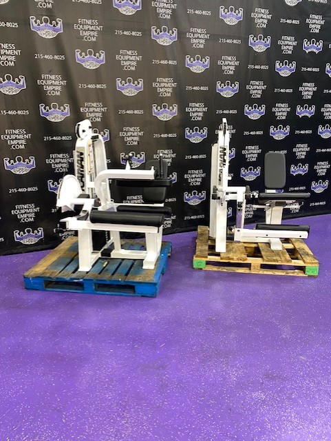 Precor Icarian Leg Extension & Seated Leg Curl Matching Pair – compact & super clean. These two units will work the entire upper leg, front to back. These are two staple movements in most people’s leg routines. These specific units are very compact and have a very small footprint, far smaller than comparable commercial leg extensions and leg curls. Super smooth and a great design. Icarian / Precor makes some of the best commercial equipment on the market. Great addition to any home, studio or commercial gym.