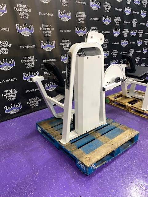 Life Fitness Pro 2 seated leg press in excellent condition. This is a late model unit by Life Fitness. Life Fitness is the industry leader in commercial grade gym equipment. This leg press has a 400 lb. stack, is extremely smooth, and is true to weight. The angle is perfect and will blast your entire lower body, glutes, quads, hamstrings and calves. The Pro 2 line by Life Fitness is by far, my personal favorite and this seems to be the case all around. I like it because they are designed well, built like tanks, are super smooth and still have some of that hardcore factor that is lacking today. In addition to them having the hardcore factor, they are also beautiful, have small footprints and aren’t intimidating to women or the beginning user.
