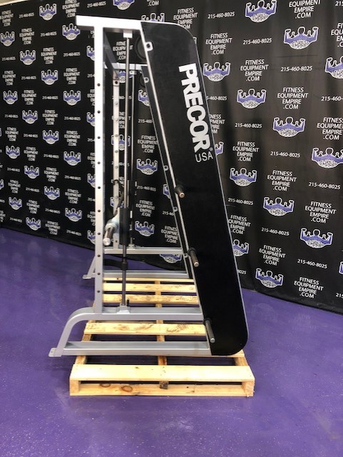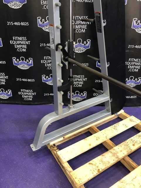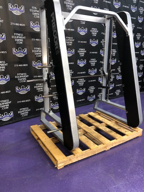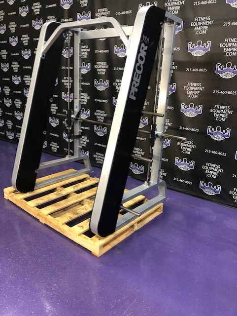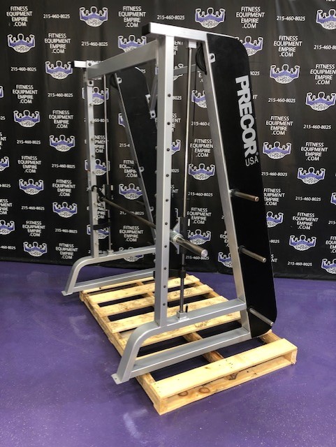 Precor Icarian platinum linear counter balanced smith machine. This is a current model Precor based on the classic Icarian line. This is one of my personal favorite smith machines because it doesn’t have any angle or slant. Wiith no angle, the tension is actually on the muscle the duration of the movement, throughout the entire rep. This machine has silky, smooth, linear bearings and is built like a tank! Built in safeties make it a great choice when training alone. The smith machine is just as effective as free weights and you’re far less likely to get hurt.