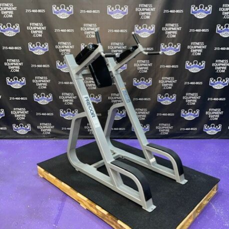 Precor VKR dip & leg raise. This unit will allow you to train a variety of muscle groups in a very small area. Some of these muscle groups are abs, serratus, back, chest & triceps. This is a full commercial grade gym quality unit. It’s built like a tank and heavy duty. This unit will disassemble, making setup and transport a breeze. This unit is in beautiful condition.