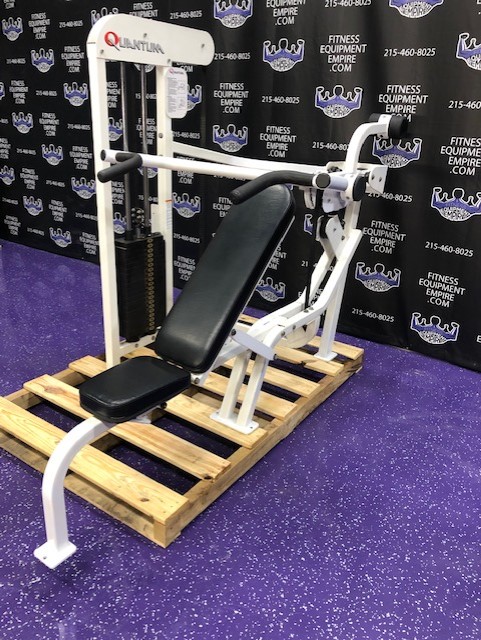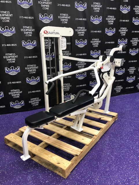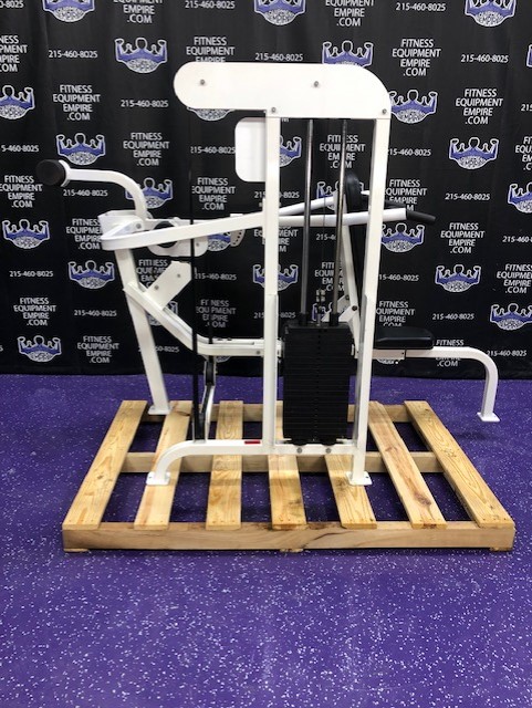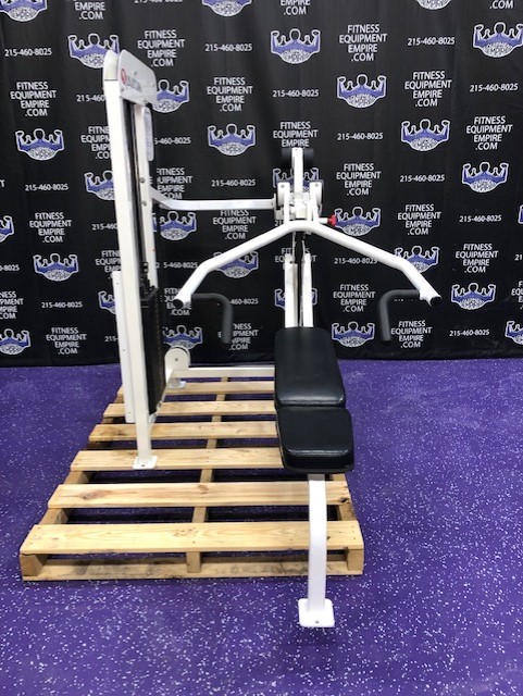 BRAND NEW Empire 8-stack jungle gym/cable crossover with 320 lb. weight stacks! 2.5” x 4.5” rugged, 11-gauge steel and oval tubing for that extra beefy appearance. Unit has high tension cables; multi chin grips that are fabricated with smooth rubber and finished with high-tech aluminum ends and collars. Stations interchange around the central hub for a possible 12-stack, L-shaped jungle gym. Options allow the substitution of 2 hi/low adjustable pulley columns replacing the tricep press down stations found on the Deluxe 8-stack version B (MDM-8SB).
