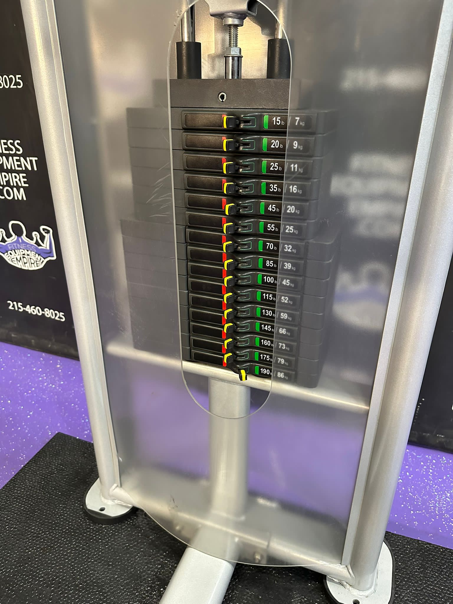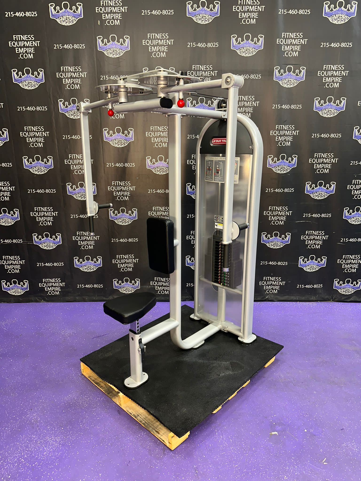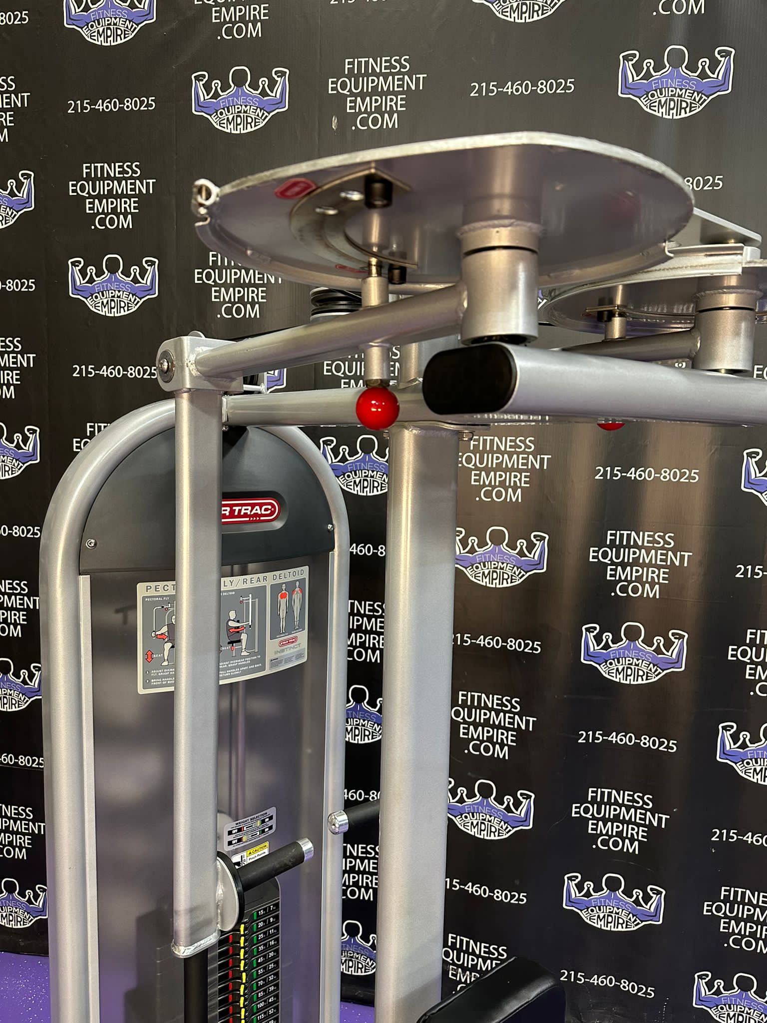 Star Trac Instinct pec fly & rear delt combo machine. This unit is designed from the original Flex Fitness pec fly, which also was an amazing machine. Star Trac bought Flex Fitness and to this day, continues to make some of the best old school machines of all time with a more modern look. This unit in particular is belt driven, extremely smooth and fully adjustable front to back, allowing you to train all angles of your pecs and rear delts. Chest flys are a must do exercise for the pecs. It’s no coincidence that you see one of these machines in every single gym. It’s a 2 in 1 and a staple.