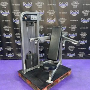 Life Fitness Pro 2 shoulder press in excellent condition. This is a late model unit by Life Fitness. Pro 2 is the heaviest duty and most beefy line of Life Fitness. It also has the best feel and the heaviest weight stacks. This unit is in stellar, super clean condition.