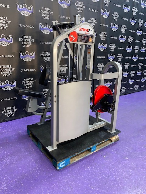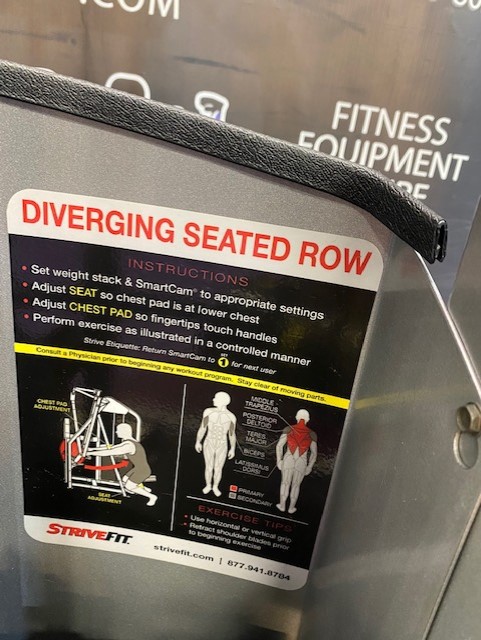 Strive diverging seated row with 345 lb. weight stack in very clean condition. This row has THE heaviest weight stack on the market. It’s also the best selectorized row in my opinion. Belt driven, super smooth and of course has Strive’s patented Smart Strength Technology which gives you 3 levels of difficulty. This is based on the CAM position. Fully adjustable in every aspect, which makes it great for users of all sizes; and due to all of the adjustments, you can work various angles of the back.